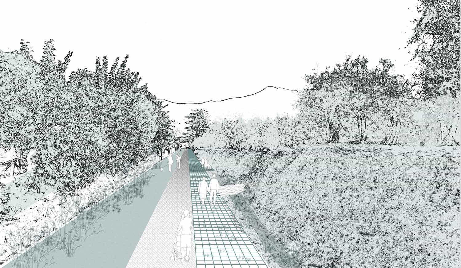 The main purpose of the project is to redevelop Via Roma, the connecting axis between the Pieve dei Santi Giovanni and Ermolao and the Certosa di Calci. These two medieval religious monuments belong to the local, provincial and national heritage. In the landscape, via Roma extends along a 40-meter contour line, which corresponds to the stretch of union between the plain of Pisa (and the Arno) with Monti Pisani, marking the entrance to the Val Graziosa and Olio street. Above this altitude the olive groves that cover Monti Pisani appear. Via Roma, therefore, performs a connecting function and offers a broad point of view on the crests and peaks of Monti Pisani. In the structure of the territory, Via Roma is a relatively recent East-West connection (end of the 19th century) and crosses a territory organized over time in an orthogonal direction - the North-South direction - that follow the topography and hydrography of the place. The development of settlements and roads has historically followed the lines of the Zambra river, whose main line descends from Castelmaggiore to La Pieve, flanked by the Provincial Road 56 (Via Oberdan Brogiotti).