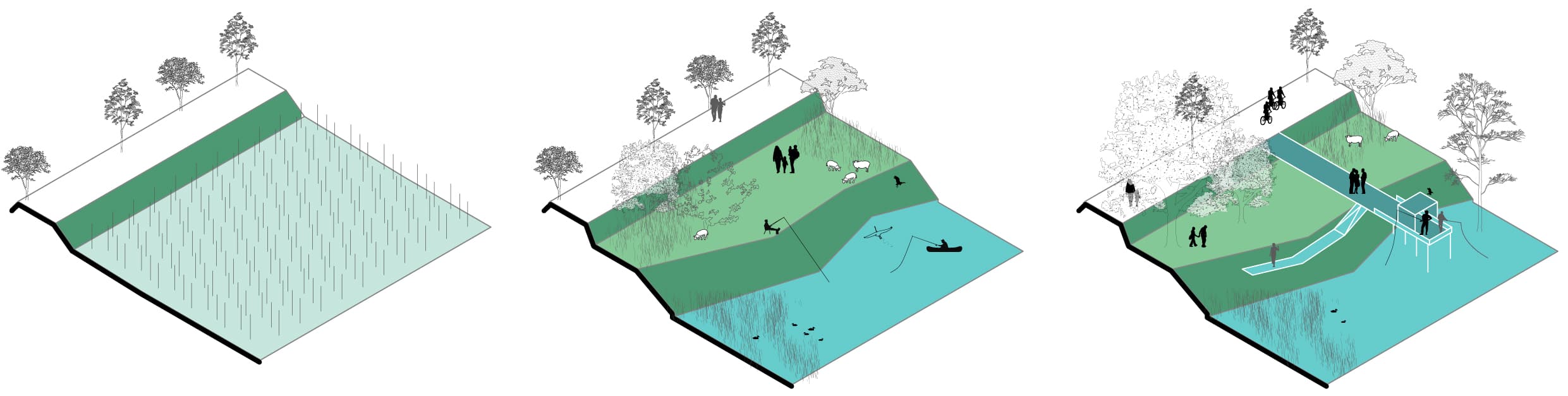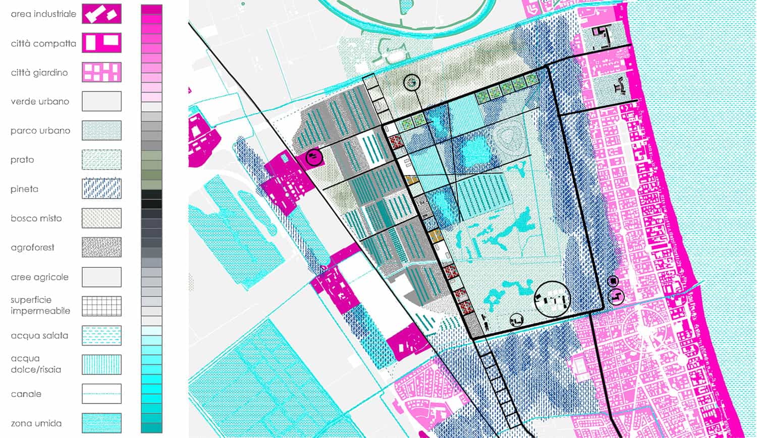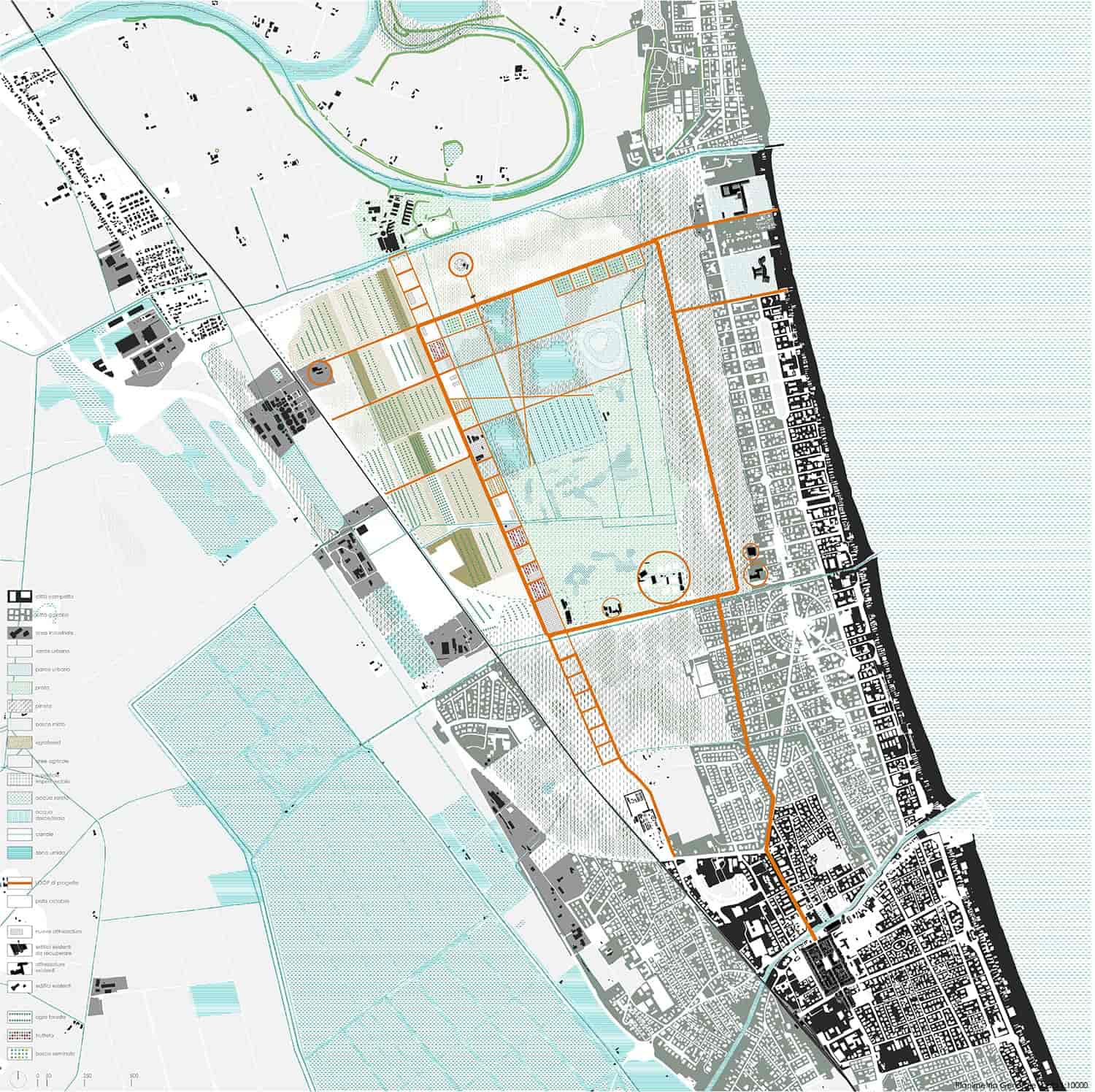 The “loop” outlines the park’s shape and a new cycle of urban development for Cervia. After Cervia Vecchia evolved into Cervia Nuova in the 17th century and the construction of Milano Marittima, a garden city, in the 20th century, the park project in the Bassona area is a new idea for a "resilient city" with a park active year-round in city life and intended to increase visitors with " green tourism.”