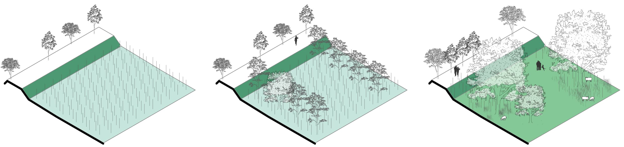 • The agricultural areas: Introducing trees is compatible with continuing crop production and has numerous advantages. This phase could be carried out with the cooperation of farmers.